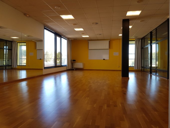 • Sala Polivalente de 79,66 metros cuadrados, con superfice de parquet, iluminación y sin gradas.