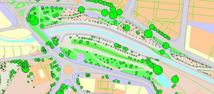 El árbol tipo del parque es el álamo de edad joven, con una altura media de 6 m. La superficie total es de 36.000m2 y en toda la zona hay repartidos más de 300 árboles. La zona de arbustos es de 250m, la de setos 830 m2 y la de césped de 9.700m2.