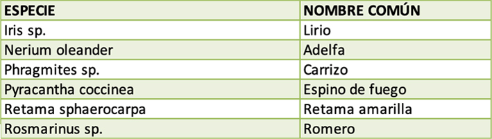 Especies principales de arbustos del Parque Universidad