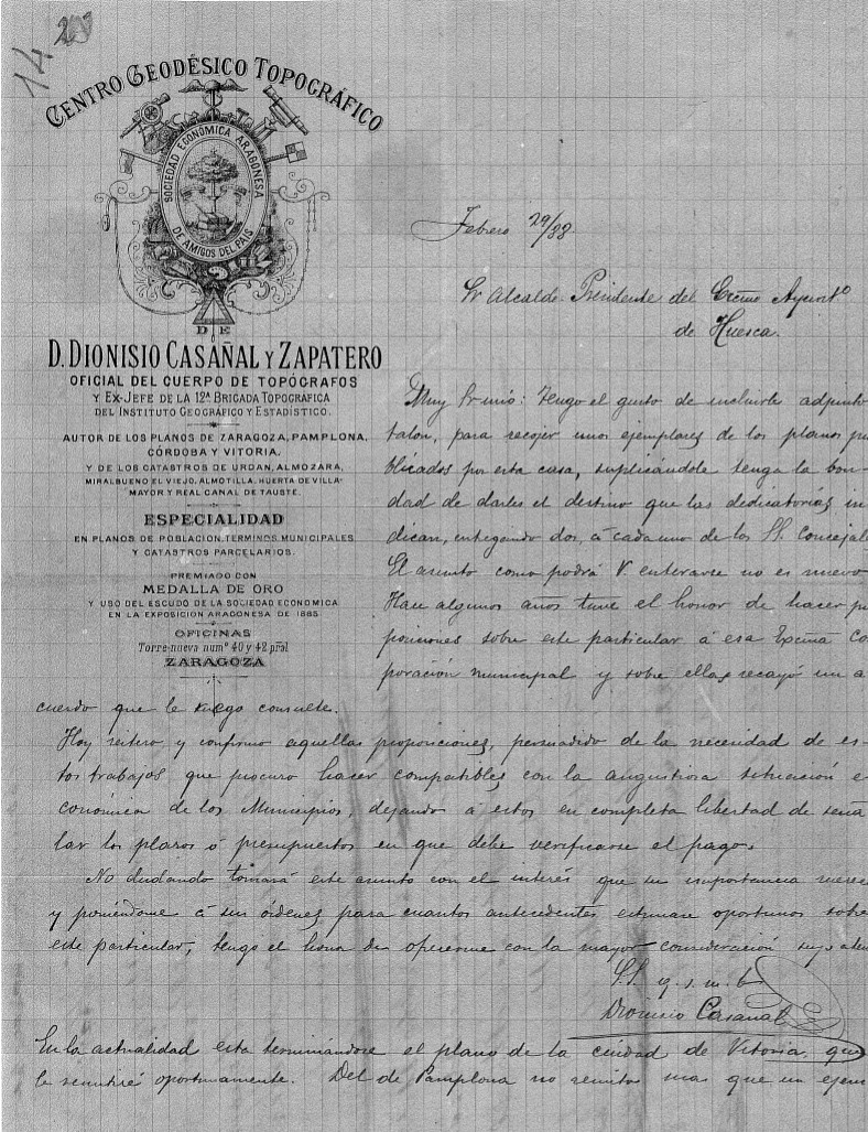 Carta de Dionisio Casañal. AMH, Expte. 1.577. ARCHIVO MUNICIPAL AYUNTAMIENTO DE HUESCA
