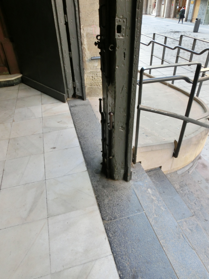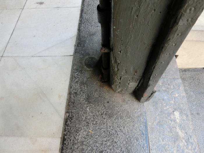 Incluso, aunque desgastada, puede verse la señal NP 227 (Nivel de Precisión 227), colocada por el IGN en el último escalón del pórtico de San Vicente El Real.