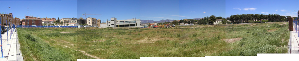En la reestructuración de la zona se incluyó también el tratamiento de ambas orillas del río Isuela en lo que es todo el entorno universitario de Huesca.