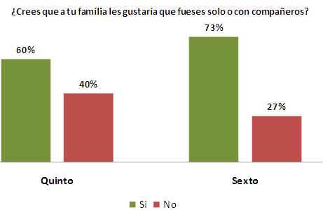 La mitad de los alumnos de quinto van al colegio acompañados por adultos, mientras que entre los de sexto, solo el 36% de los alumnos llegan a la escuela acompañados de adultos. El deseo de las familias de dejarles ir solos muestra una evolución clara hacia el sí.
