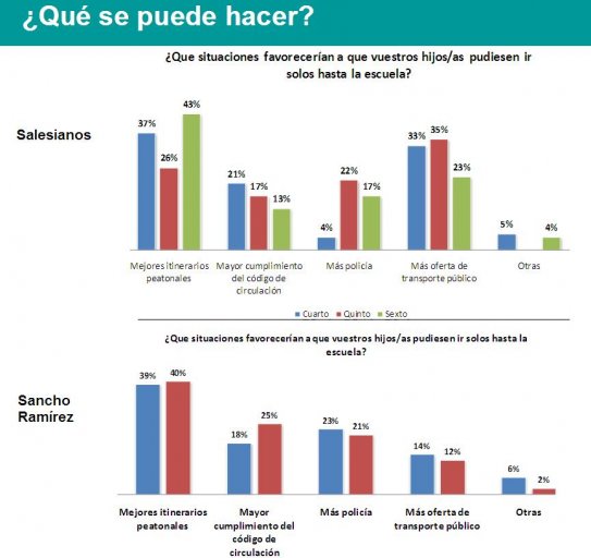 A buena parte de los niños les gustaría ir solos al colegio aunque hay factores que lo dificultan como la velocidad de los vehículos, las aceras estrechas, problemas de visibilidad, incumplimiento en los pasos de peatones...