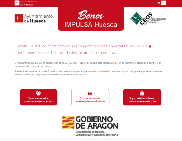 Tanto los usuarios como las empresas y comercios interesados en participar tendrán que acceder a la web https://bonosimpulsahuesca.ceos.es/.