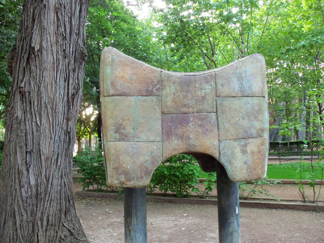 Biografía del autor: María Jesús Bruna Puyuelo (Huesca, 1945) estudia en la Escuela de Artes y Oficios de Zaragoza, completando sus estudios con cursos de cerámica –entre otros con Ángel Garraza-, escultura y grabado. Ha participado en numerosas exposiciones tanto individuales como colectivas, destacando Betilos en la Sala Valentín Carderera del Ayuntamiento de Huesca, Contenedores de Ondas en el Palacio de Montemuzo de Zaragoza, Contenidos en la Sala Monserrat Roig de Barcelona, o Luz-Aire I. (Contenedores) celebrada en el Museo Pablo Serrano de Zaragoza. Ha trabajado con distintos materiales como el hierro, el acero, el hormigón, la cerámica o el cristal, combinándolos en la misma obra, lo cual potencia la variedad de texturas y de color. Tiene numerosas intervenciones en el espacio público, especialmente en la provincia de Huesca, como en el área de descanso del puente del río Alcanadre, Árbol de la vida en Barbastro, Las puertas de Fraga en Fraga, Contenedor de Hombres en Broto, etc.