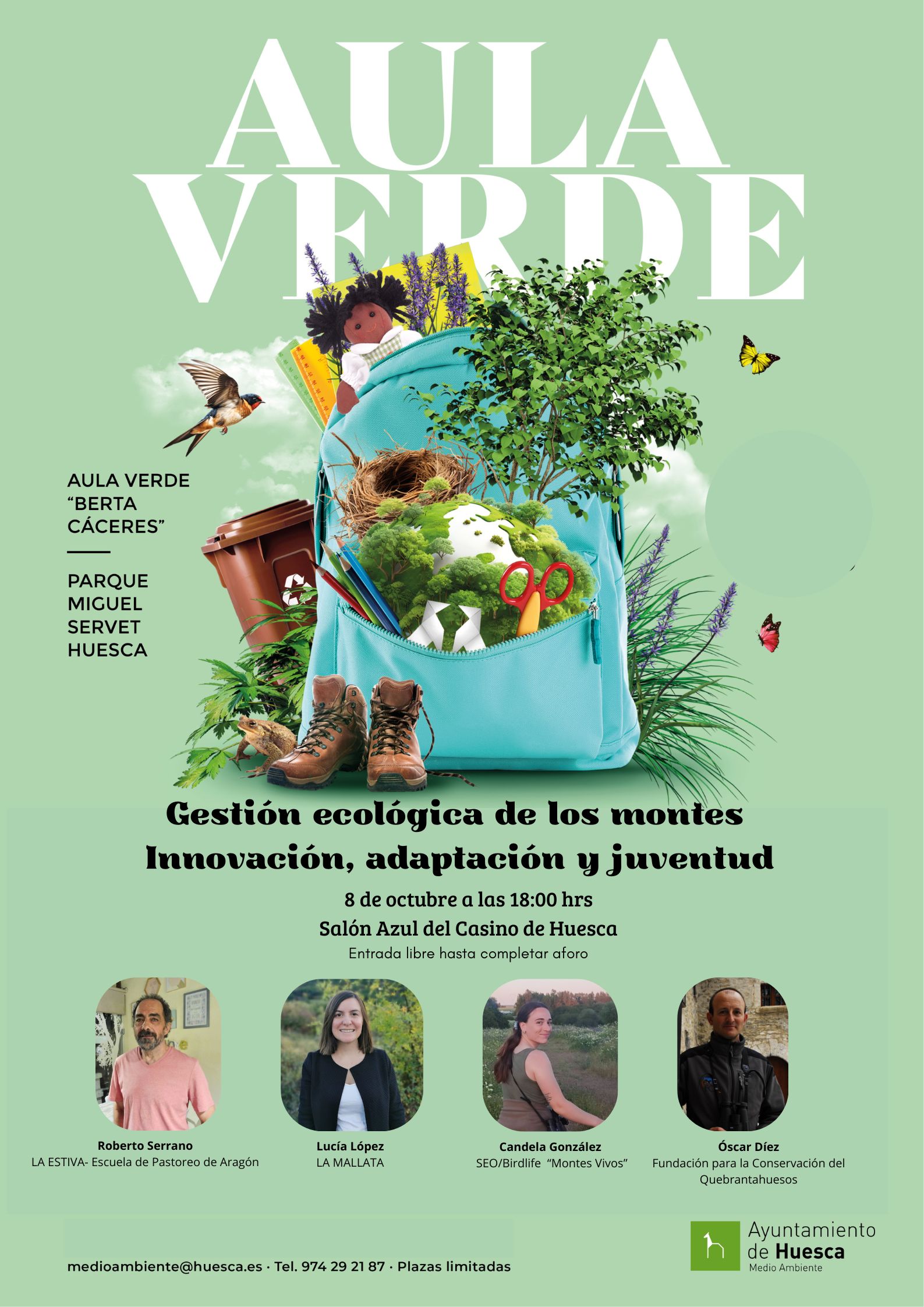 Las actividades del Aula Verde continúan después del verano con la conferencia "Gestión ecológica de los montes. Innovación, adaptación y juventud", que se llevará a cabo en el Salón Azul del Casino de Huesca el próximo 8 de octubre a las 18:00 horas. Entrada libre hasta completar el aforo.