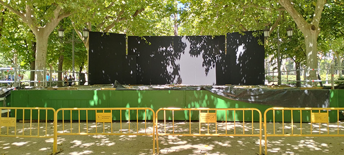Se están instalado escenarios en los principales puntos donde se desarrollarán actos festivos y culturales, como la plaza López Allué, plaza de Navarra, Parque Universidad, Paseo Central y Solárium del Parque Miguel Servet o, en los próximos días, en la plaza de la Catedral. También se habilitarán plataformas específicas en la plaza San Lorenzo para la tradicional ronda al Santo del día 9 y para facilitar el trabajo de los medios de comunicación hasta el día 15.