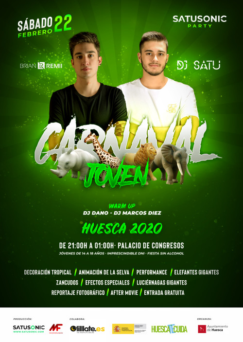 La fiesta incluye la actuación del DJ Satu, artista oscense con un importante número de seguidores jóvenes, que estará acompañado de animación con temática de la selva. Además, dispondrá de servicio de dispensación de bebidas sin alcohol y bocadillos.