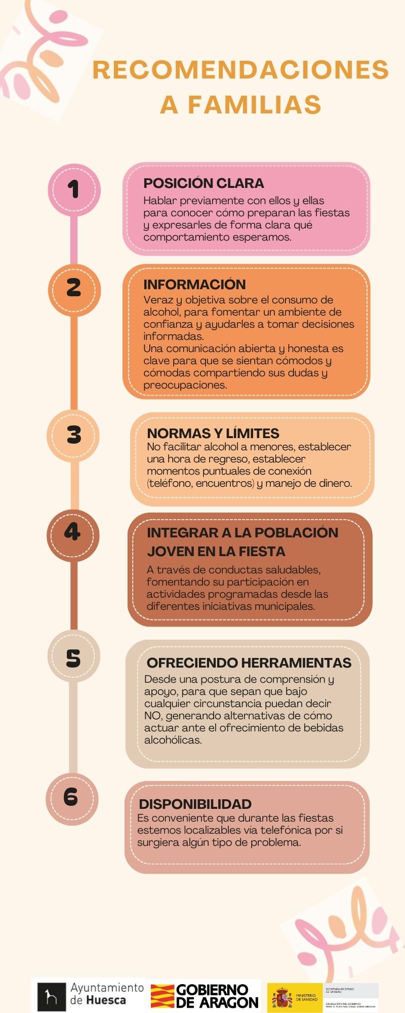 También, desde el Proyecto Inter, acompañando a familias que desarrollan talleres formativos a través de los centros educativos para la prevención de adicciones y el fomento de la parentalidad positiva, donde se recomiendan una serie de pautas a las familias para como acompañar a nuestros hijos e hijas en los eventos festivos: