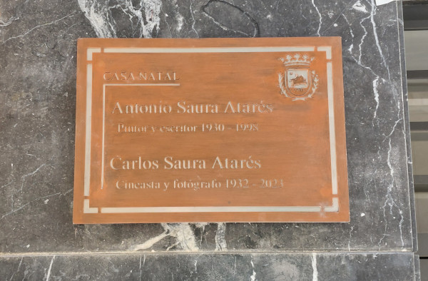 El 10 de febrero de 2023 nos dejaba el cineasta oscense Carlos Saura a los 91 años de edad. Un año después, el Ayuntamiento de Huesca le ha querido rendir un homenaje con la colocación de una placa conmemorativa en su casa natal, en la calle Padre Huesca número 2, donde nació en 1932, dos años después que su hermano Antonio, pintor y escritor.