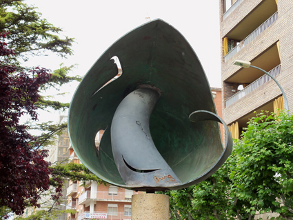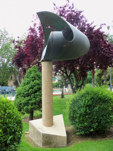 Crónica: Bruna había presentado la escultura dos años antes, en la I Bienal de Jaca, cuyo primer premio quedó desierto. Tras este certamen la terminó y la ofreció al Ayuntamiento de Huesca. A la artista sólo se le pagaron los materiales, por lo que podemos hablar más de una donación que de una compra propiamente dicha. Su adquisición se debe a la política del consistorio de que todos los artistas oscenses estuvieran representados en la ciudad. En un principio la escultura iba a ser colocada en la zona deportiva del Perpetuo Socorro, pero posteriormente se le asignó un espacio en torno al recién construido edificio del Banco de España.