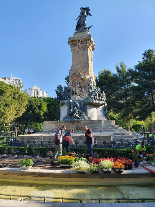 El encargado de Jardines del Ayuntamiento de Huesca, Javier Escar, y el gestor de Infraestructura Verde, Javier Giménez; han impartido esta mañana en Zaragoza capital una pequeña formación sobre ornamentación floral de las zonas verdes.