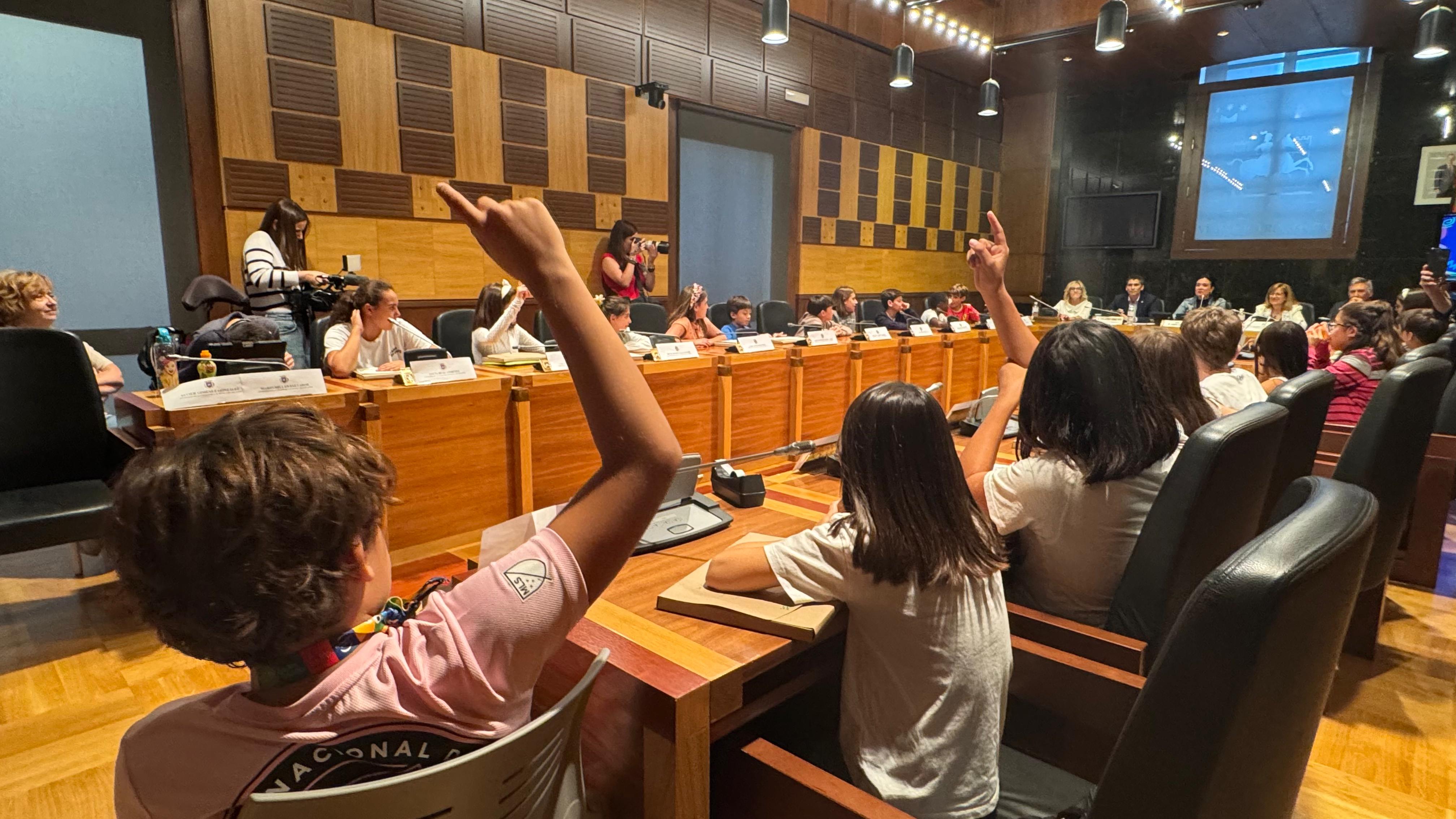 El salón de plenos del Ayuntamiento ha acogido esta tarde la primera sesión del Consejo de la Ciudad de las Niñas y los Niños, presidida por la alcaldesa Lorena Orduna, y con la participación de los nuevos consejeros y consejeras que inician su andadura este curso