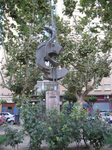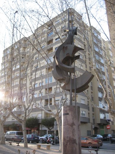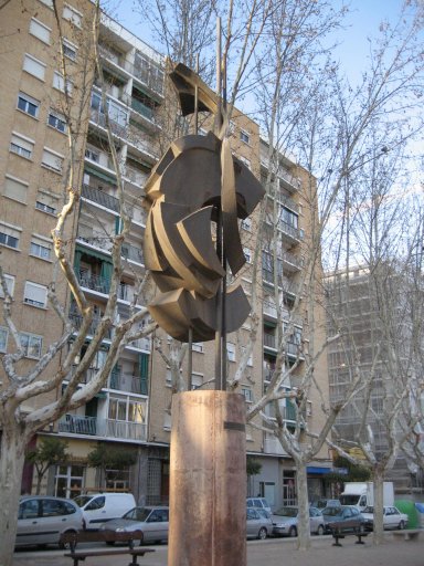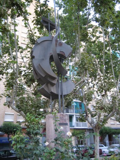 Biografía del autor: Ignacio Rodríguez Ruiz nació en Bilbao el 31 de julio de 1940. Pintor, escultor y dibujante cursó estudios en la Academia Abel Bueno de Zaragoza. Desde el curso académico 1953-54 estuvo en la Escuela de Artes y Oficios también de la capital aragonesa. Con posterioridad estudió en la Escuela Massana y en el Estudio Lefébre de Barcelona. Además realizó, estudios de Decoración y Publicidad, prácticas de cerámica con Andrés Galdeano desde 1961 y de fundición de hierro desde 1965. Su trayectoria como escultor se inició en 1967 aunque dedicó algunos años –si bien intermitentes- a la enseñanza. A lo largo de su carrera artística ha realizado un número considerable de esculturas por toda España. Su obra discurre desde los monumentos figurativos como el de Goya, Buñuel o el de General Palafox a esculturas abstractas en espacios públicos como precisamente es el caso del “Monumento a la Agricultura e Industria” que aquí nos ocupa. Además de escultor es pintor y fruto de ello son las ilustraciones de portadas para novelas y sus dibujos sobre el mundo rural de las obras completas de Luis López Allué que sirven para ilustrar numerosas voces de la Gran Enciclopedia Aragonesa y de la Historia de la Jota de Alfonso Zapater. Ignacio Rodríguez Ruiz es miembro de la Comisión Gestora del Museo de la Resistencia «Salvador Allende», de Perspectivas Plásticas Aragonesas y de la Comisión Gestora del Museo de Arte Contemporáneo de Zaragoza. Además es coordinador en Aragón del Centre Culturel «Casa de Goya» de Burdeos, fundador del Grupo Z-84 (homenaje a Miguel Labordeta) y director gráfico y miembro del Consejo de Dirección de la Gran Enciclopedia Aragonesa.