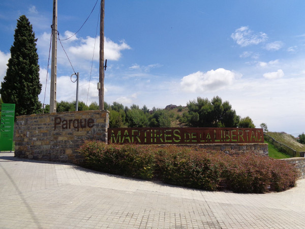 Crónica: El conjunto del Parque Mártires de la Libertad fue un proyecto financiado por el Ayuntamiento de Huesca y el Gobierno de Aragón dentro del proyecto URBAN de la UE. Fue proyectado por el área de Medio Ambiente del Ayuntamiento que rehabilitó la zona del cerro de las Mártires de 2,8 hectáreas como parque. Durante muchos años este cerro estuvo ocupado por un importante asentamiento chabolista. Incluía el proyecto la rehabilitación del cementerio (que funcionó como camposanto local por poco tiempo, de 1832 a 1846, hasta que se construyó el actual de la carretera Zaragoza) y la ermita con la advocación a Nunilo y Alodia, junto con la realización de un parque con mirador y un monumento conmemorativo a los caídos republicanos en la guerra civil. Se decidió levantar el monumento, de acuerdo con el “Círculo Republicano Manolín Abad” de Huesca que había realizado toda la investigación documental sobre los caídos. Este cerro tiene unas connotaciones históricas muy importantes para la ciudad: en la guerra civil española, durante los primeros días de la sublevación en Huesca, los fusilamientos y enterramientos del bando republicano a manos nacionalistas, se realizaron en el actual cementerio municipal, pero a finales de agosto del 36, este enclave fue ocupado por las fuerzas republicanas, por lo que tuvo que ser sustituido para los enterramientos, por el antiguo cementerio situado en el cerro de las Mártires. Con los años se encontró allí una gran fosa común. Según la documentación recopilada, desde el 3 de septiembre de 1936 hasta el final del asedio republicano a la ciudad, en marzo de 1938, tuvieron lugar 1.238 enterramientos. Entre ellos hay varios cientos de soldados, unos 130 fusilados y varias decenas de oscenses muertos a causa de los bombardeos. Entre 1959 y 1964, cerca de 850 cuerpos, en su mayor parte del cementerio de las Mártires, fueron trasladados de Huesca al Valle de los Caídos, aunque algunos de los fallecidos siguen todavía en el interior del cementerio y sus alrededores. Entre las víctimas está uno de los oscenses más conocidos de la época, el artista, periodista y pensador Ramón Acín, quien fue asesinado junto a su mujer, Conchita Monrás. El 12 de Diciembre de 2014, se inauguró el parque y el monumento mediante un acto institucional. Intervino en el mismo, el presidente del Círculo Republicano Manolín Abad, de Huesca, Carlos Escartín, y la alcaldesa Ana Alós. La inauguración se acompañó de actos durante todo el fin de semana El monumento fue muy bien acogido desde el Círculo Republicano cuyo presidente, Carlos Escartín, dijo ese día que se trataba “de recordar a los caídos, los indocumentados y aquellos de los que no se tiene constancia”, agradeciendo el trabajo del Ayuntamiento y de los técnicos municipales. El parque ganó el premio 2015 de 'Mejor Proyecto de Jardinería Pública de España' dentro de los premios nacionales que entrega de forma anual la Asociación de Parques y Jardines Públicos (APJP). Se trata de un parque muy novedoso por dotarse de un sistema de riego inteligente gestionado por ordenador central con un sistema de control remoto y apoyado por la información que aportan dos sensores de lluvia, lo que ayuda a optimizar el consumo de agua de forma sostenible.