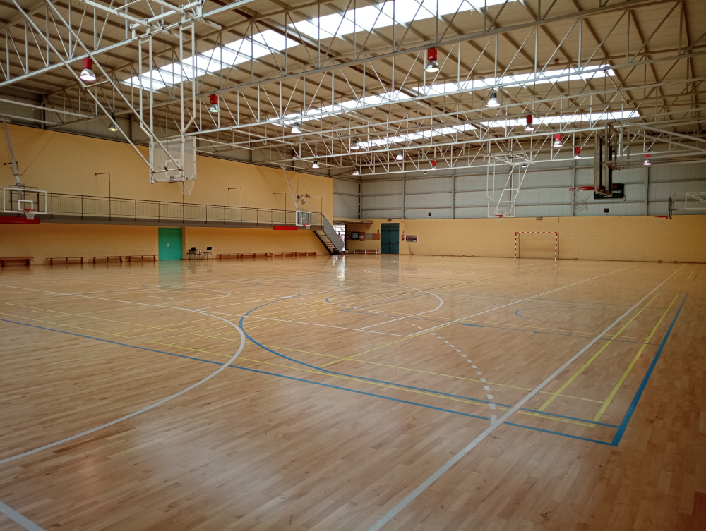 El pabellón Alcoraz cuenta con cubiertas y una pista polideportiva de 42 x 27 metros de parquet con iluminación y sin gradas.
