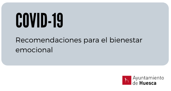 Ante la situación de alerta sanitaria generada por el coronavirus, desde el Área de Derechos Sociales del Ayuntamiento de Huesca, queremos acompañarte compartiendo diferentes recomendaciones que sirvan de ayuda para una mejor gestión psicológica durante esta circunstancia, con el objetivo de hacer más tolerable la situación de confinamiento durante la cuarentena.