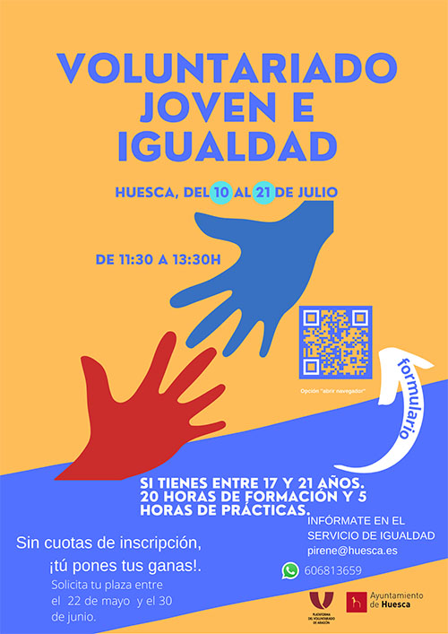 Además, desde el Servicio de Igualdad también se organiza un curso de voluntariado e igualdad para jóvenes de entre 17 y 21 años que tendrá lugar del 10 al 21 de julio, de lunes a viernes, de 11.30 a 13.30 horas. El curso ofrece 20 horas de formación teórica y 5 horas de prácticas.